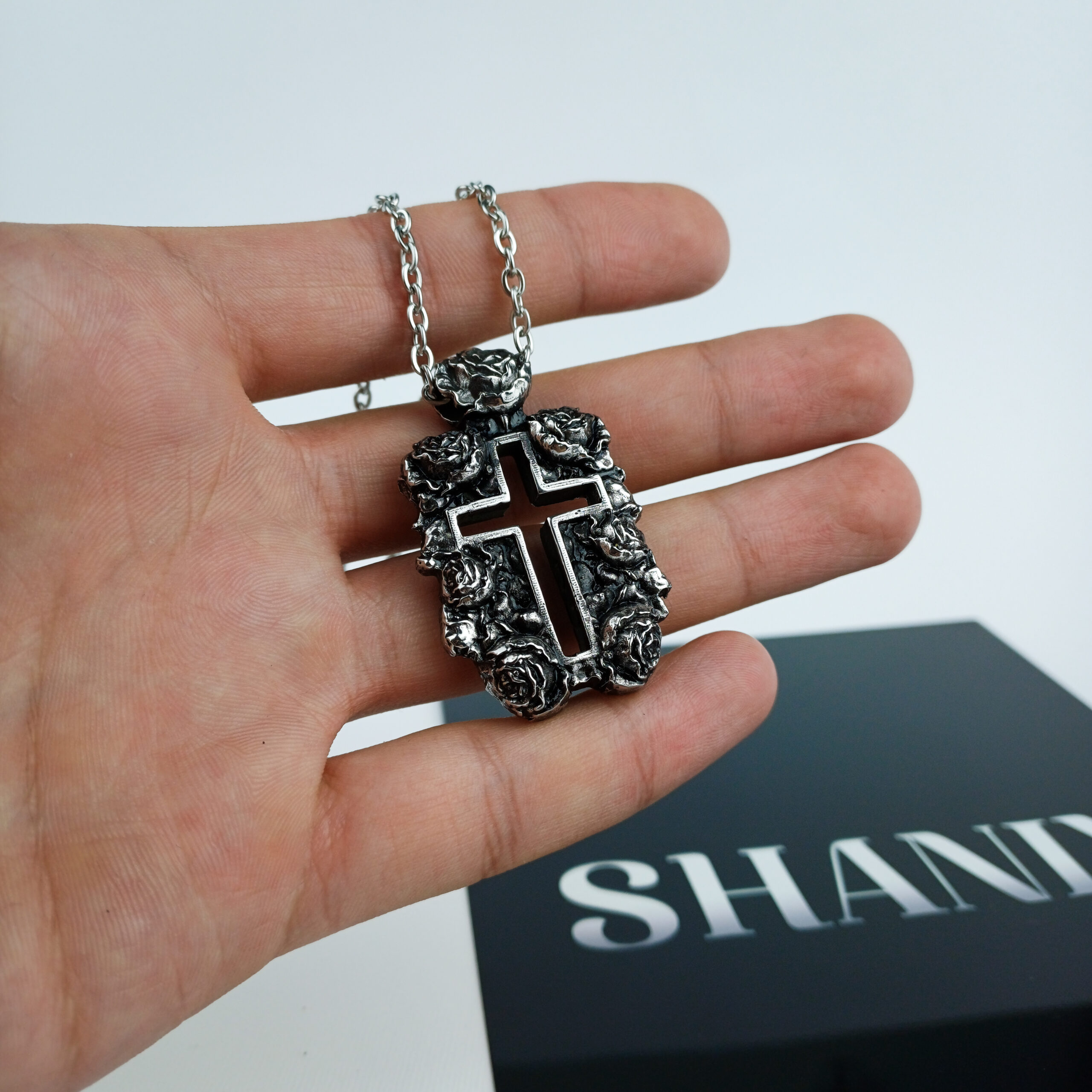 • گردنبند صلیب و گل رز